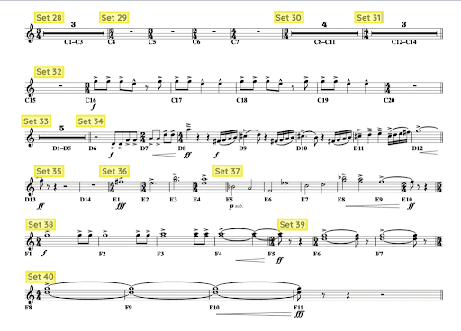 Set notation creates more productive rehearsals by giving your students a visual of how their music aligns with the drill. Give your students a head start by having clearly marked set structure before they even step outside!